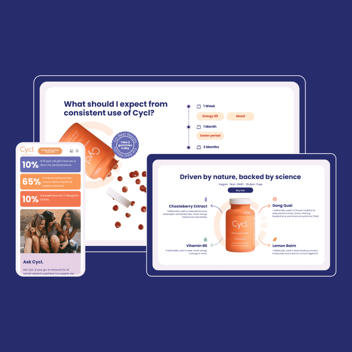 To support their growth and connect with their audience more effectively, Cycl Health recognized the need to redefine their digital presence. They aimed to create a seamless and engaging shopping experience for their customers, elevating their user experience to drive online sales and establish themselves as trusted experts in their industry. This transformation would position them as a go-to brand for individuals seeking smart, accessible solutions to PMS-related challenges.