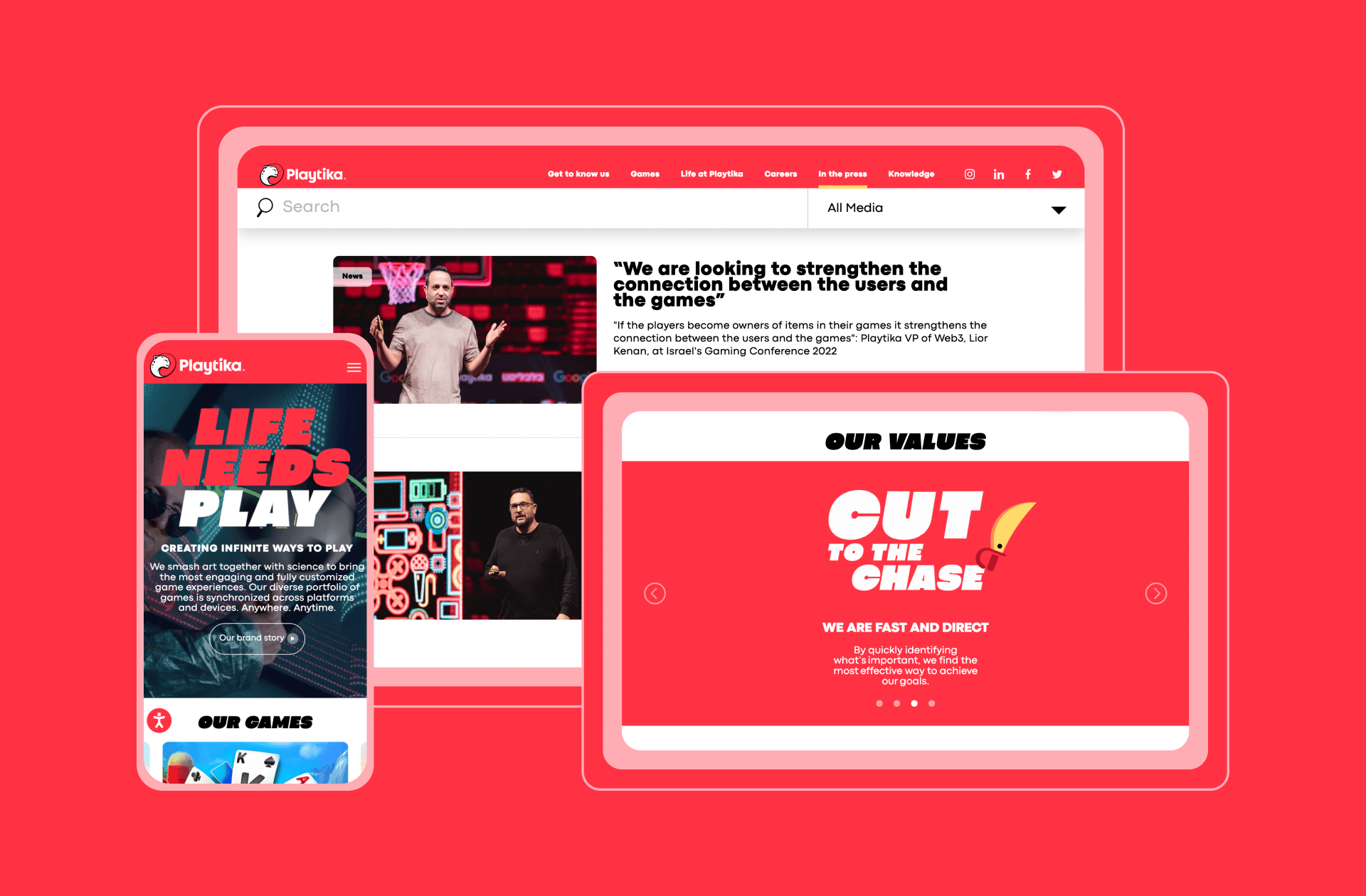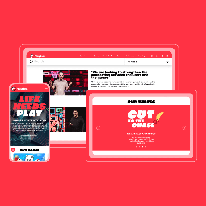 When Playtika decided to rebrand, a big part of the initiative centered around rebuilding its website from the ground up. One of the primary goals was to build their employer brand and use the website as a recruiting resource to attract potential candidates, collect applications, and display open positions fetched from their internal systems. The project had to be completed in just four weeks, so we wasted no time getting started.
