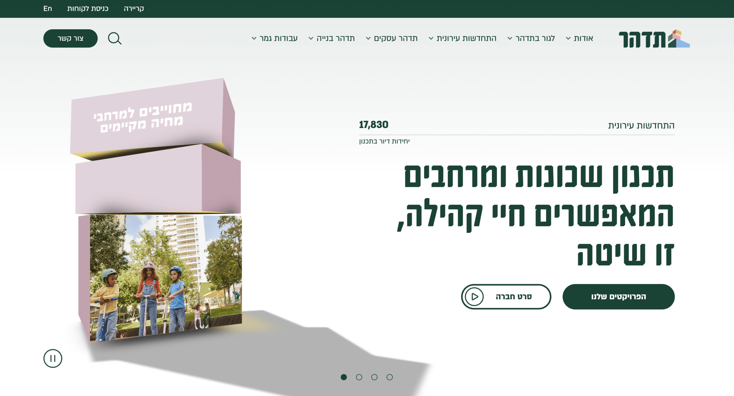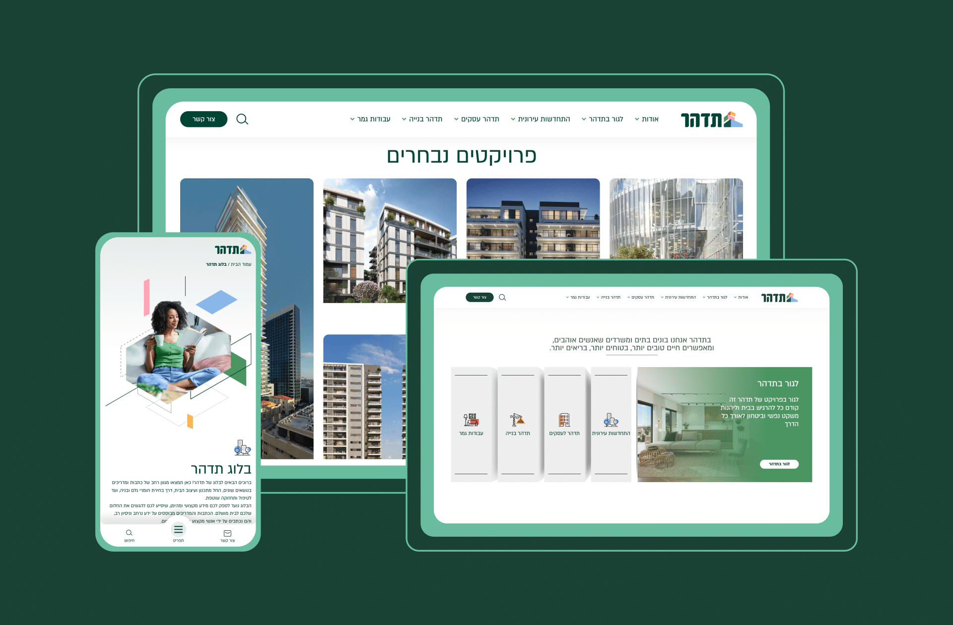 Newly Designed Website Based on the Existing Brand: To make all the heavy building images feel a bit lighter, we added breathable gradients and animated shapes and forms around the main photos of each project to give them a more vivid look and feel. We included icon language to enable goal-directed browsing. The advanced and modular bilingual (Hebrew/English) WordPress website provides maximum flexibility and extended capabilities for Tidhar’s content editors.